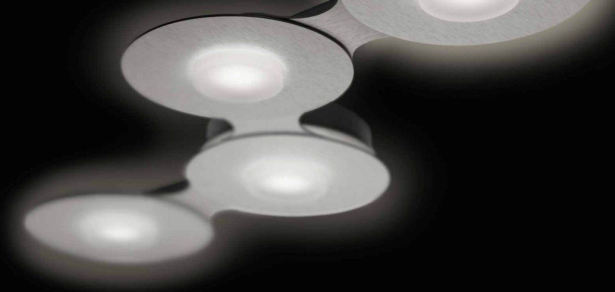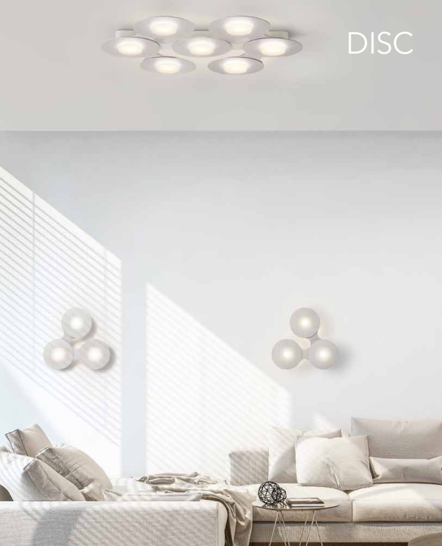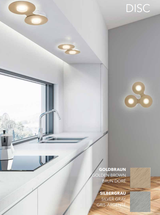 | DISC sorgt für dynamisch lichtstarke Kreativität in den eigenen vier Wänden. Wie Kettenglieder verbinden sich hochwertig metallische Kreise zu immer neuen Leuchtenformationen an Wand und Decke. Transluzente Lichtoptiken verteilen das Licht homogen auf den gebürsteten Flächen und leuchten den Raum angenehm diffus aus. Dezentes Licht nach hinten lässt die Leuchten filigran schweben. |